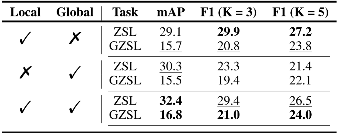 表 1. 不同方法在 NUS-WIDE 和 Open Images 数据集上 ZSL 和 GZSL 任务的比较