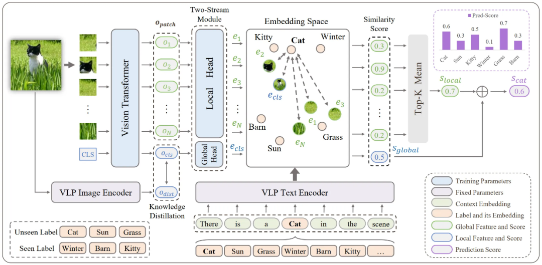 - MKT体系主要由图像编码器构成,同时包含图文预训练模型中的图像编码器以及文本编码器。研究者采用知识蒸馏技术来确保图像与文本嵌入之间的高度一致性,并引入了提示学习机制以动态更新标签嵌入表示能力。