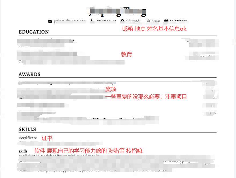 - 我使用了flowcv网站提供的免费模板来进行排版调整。(这正是我选择此方法的原因:直接翻译后的英文简历PDF通常无法满足中英简历的要求。)由于中英文简历在内容布局和格式要求上存在显著差异,并且考虑到不同场合下对个人简介的需求可能有所不同(如职业定位与展示重点),因此我认为更换适合中英双语需求的模板会更加高效实用。接下来的工作将集中在以下几个核心模块上:教育经历、获奖记录、专业技能展示以及参与的项目与研究成果等几个关键部分来构建我的个人简介内容。