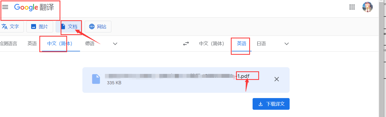 - 注意,在使用谷歌翻译时,请确保将内容转换为PDF格式更为合适。