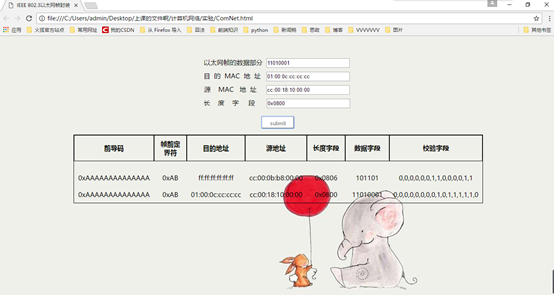 请在界面上绘制各个组件,并将以太网帧数据字段、源MAC地址字段和目的MAC地址字段从界面上输入。