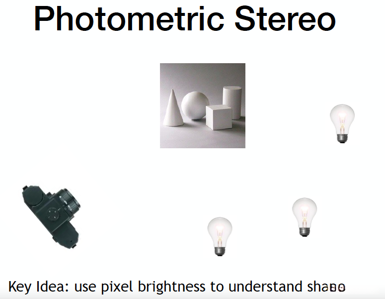 Idea 2: Photometric Stereo; this is an approach requiring just one camera. Instead of moving the camera, they moved the light source. People have developed very effective depth estimation systems that rely solely on light motion.