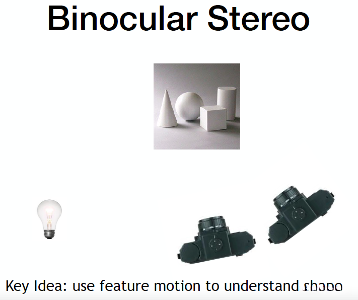 Idea 1: Binocular Stereo, it operates on the principle of binocular disparity owing to the fact that humans possess two eyes.