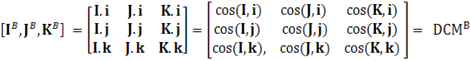 I B= {I.i, I.j, I.k}T , J B= {J.i, J.j, J.k}T, K B= {****K.i, K.j, K.k}T