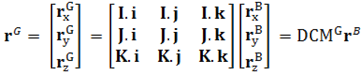 rxG = I B.r B = {I.i, I.j, I.k}T.{**** rxB, ryB, rzB} T = rxBI.i + ryBI.j + rzBI.k