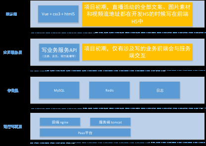 在此次项目中,直播平台的架构演进主要是应用服务层的演进,包括以下三个阶段。