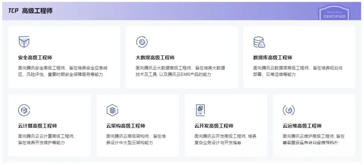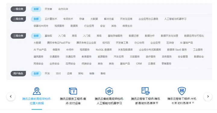 腾讯云认证考试体系分为两大模块:云计算技术认证和专项技术认证。