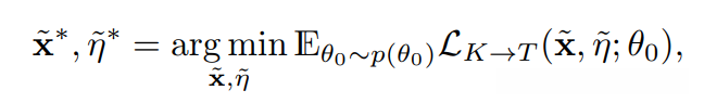 设置损失函数 L,目标函数如下,使用L进行反向传播更新蒸馏数据