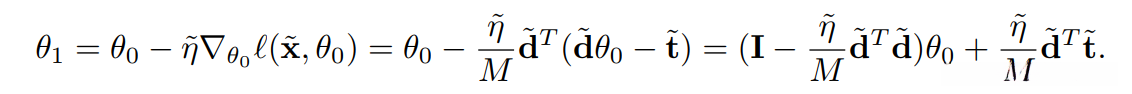 结论:对于一个二元损失的线性模型来说,在相同的一个梯度下降步骤,蒸馏数据的数量至少要大于真实数据的向量维度值才能达到相同的性能。证明过程如下: