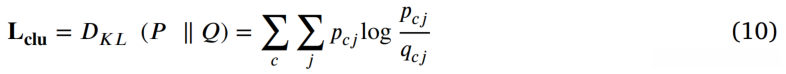由于目标分布 P 是基于 Q 形成的,因此 Q 中嵌入的学习是自优化的,旨在使其更接近目标分布 P。