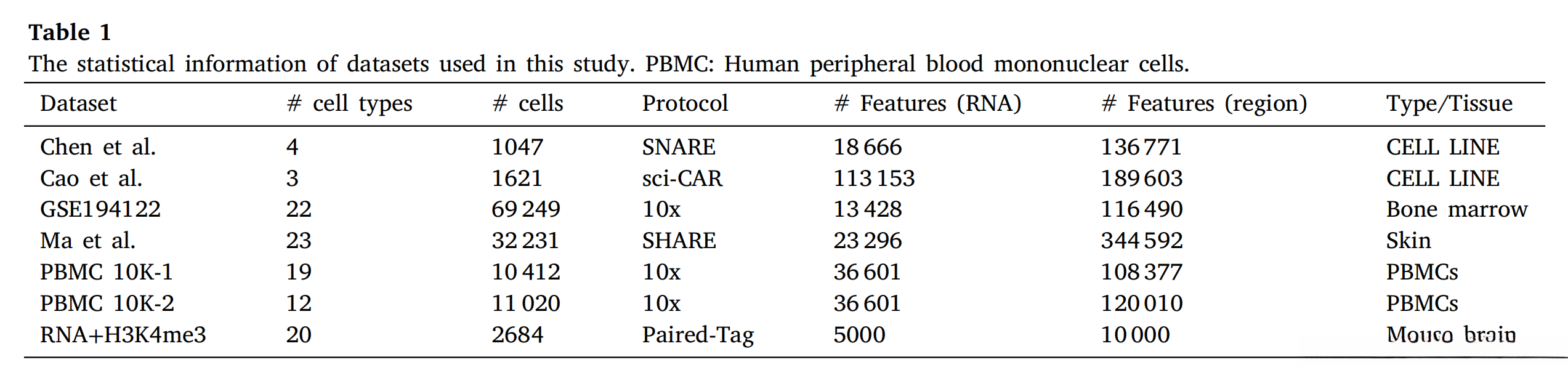 scRNA-seq 数据(𝑅𝑐×𝑔)提供了细胞基因表达水平的信息,而 scATAC-seq 数据(𝑅𝑐×𝑝)提供了染色质可及性的信息。将这两类数据整合,可以获得更全面和精确的细胞表示(𝑅𝑐×𝑧),从而克服单一数据类型的局限性。这种整合表示不仅提高了聚类和可视化的准确性,还有助于识别和解释细胞群体中潜在的结构和动态变化。