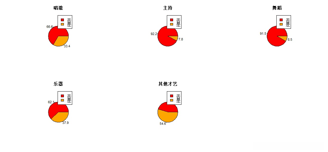 pie(v5,labels=piepercent45,main="其他才艺",col=color)