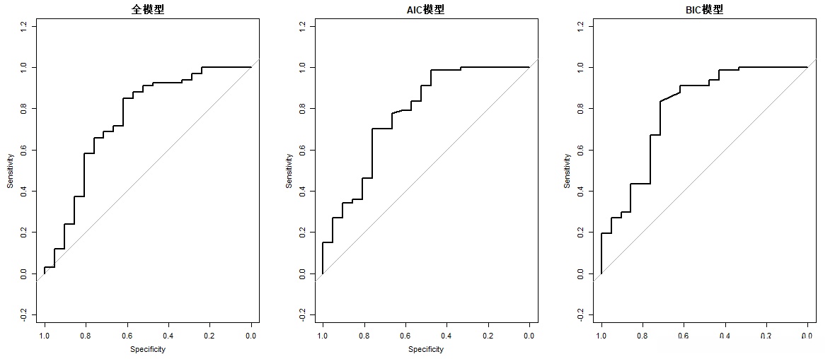 names(AUC)=c("全模型","AIC模型","BIC模型")