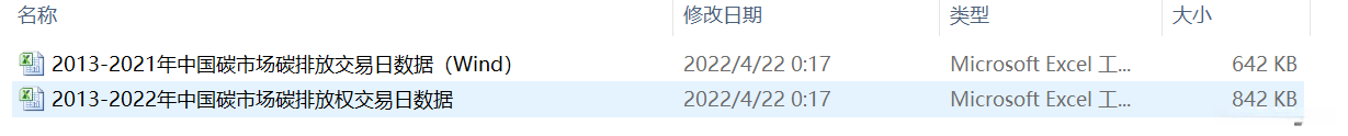 | 中国碳市场碳排放权交易日数据(其他来源) | 2013-2022 | 98464 | 中国碳市场碳排放交易日数据(Wind) | 2013-2021 | 59268 |