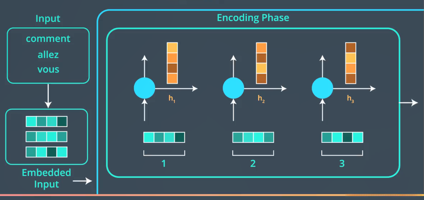 例如,在机器翻译任务中(如图所示),输入是一个外文句子(source sentence),我们需要将其经过特征提取转化为词向量(word embeddings)进行后续处理。