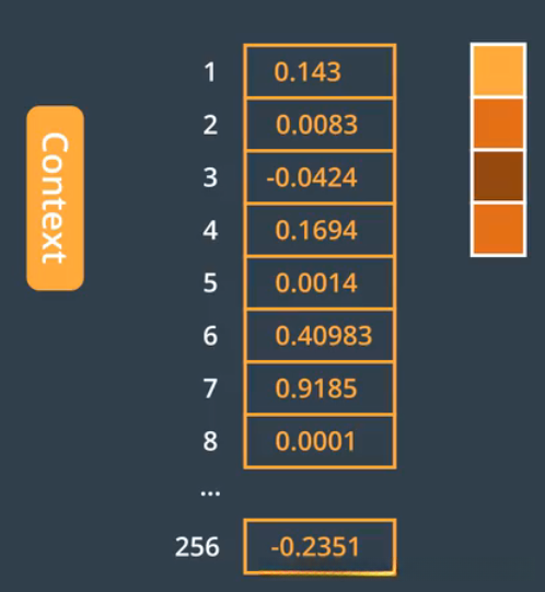 context的结构是一个向量,在其长度方面我们进行了预设设置,并且既可以非常长又可以非常短;为了表示这一概念我们采用了四个方格作为象征性标记。