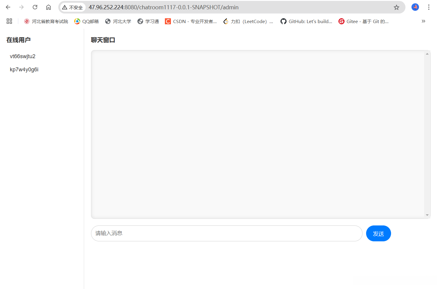 http://47.96.252.224:8080/chatroom1117-0.0.1-SNAPSHOT/user](http://47.96.252.224:8080/chatroom1117-0.0.1-SNAPSHOT/user "用户端 - 聊天窗口")