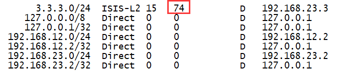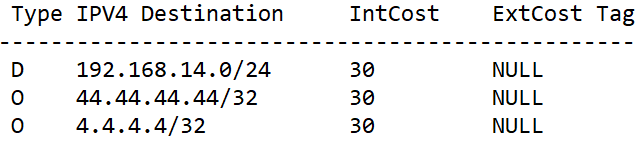 对于External类别的cost值,在IP路由表中计算的方式是将64加上IS/OS路由表中IntCost与ExtCost之和。