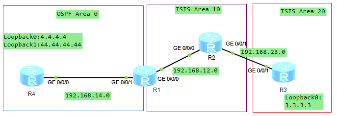 配置 OSPF IS-IS协议,R3环回口通过路由引入放到IS-IS中