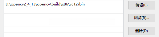 1、给系统变量配置path:添加:D:\opencv2_4_13\opencv\build\x86\vc12\bin