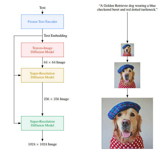 Imagen由一个文本编码器和一系列条件扩散模型组成,前者将文本映射到一系列嵌入,后者将这些嵌入映射到分辨率不断提高的图像
