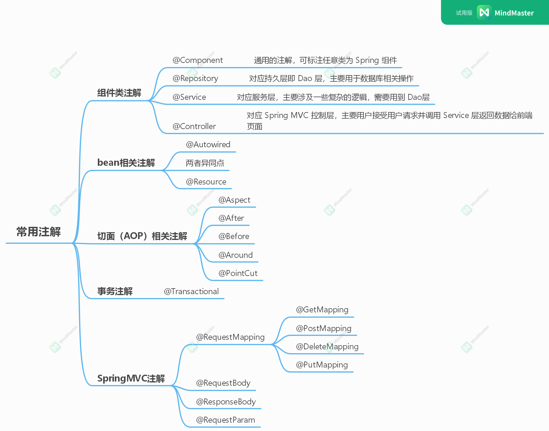 我公布的所有思维导图笔记(Java后端技术知识点汇总)目录链接 前言 博主在接触到软件相关开发项目时,项目中涉及SSM框架知识, 在项目工作过程中,是边学习边工作的状态。 工作过程中很想掌握SSM框架...