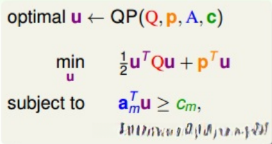 因此最后得到了一个带不等式约束的凸二次规划问题。此时已经可以使用QP标准包进行求解,只需进行参数代换即可,