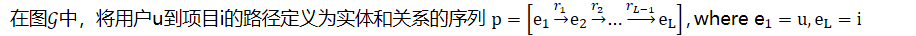 - 对于一个用户-项目实体对,通常在KG中有一个连接路径集合