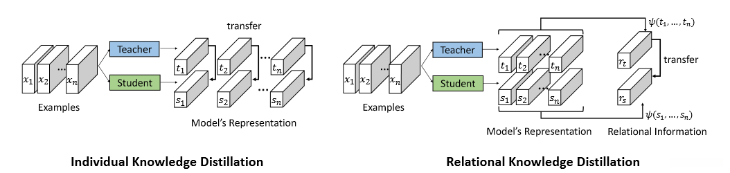 我们开发出一种新型的方法,命名为关系知识蒸馏(RKD),用于提取数据实例间的相互关联。