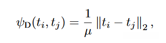 通过提供两个训练实例来比较它们的相似性时, 距离势函数ψD用于计算这两个实例在输出表示空间中的欧氏距离D_E