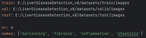 val: E:/LiverDiseaseDetection_v8/datasets/valid/images 验证数据集的位置