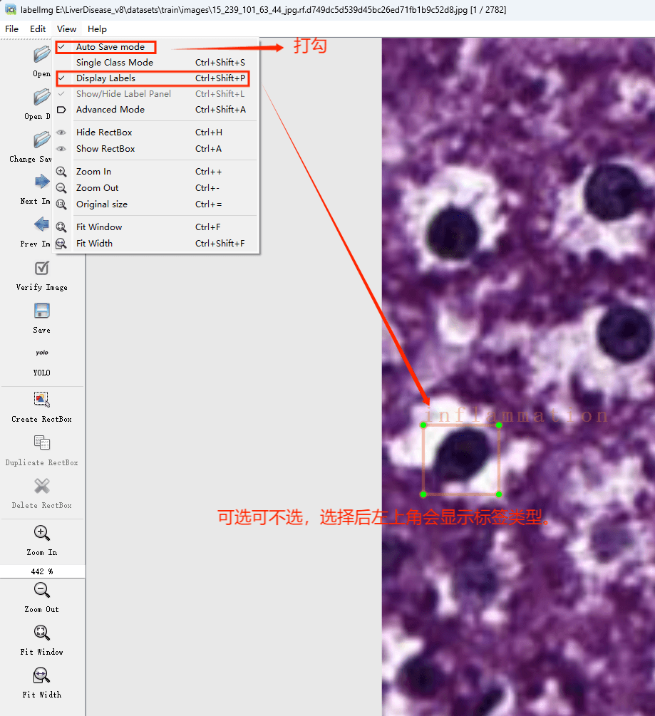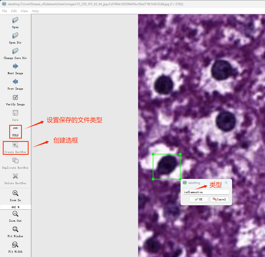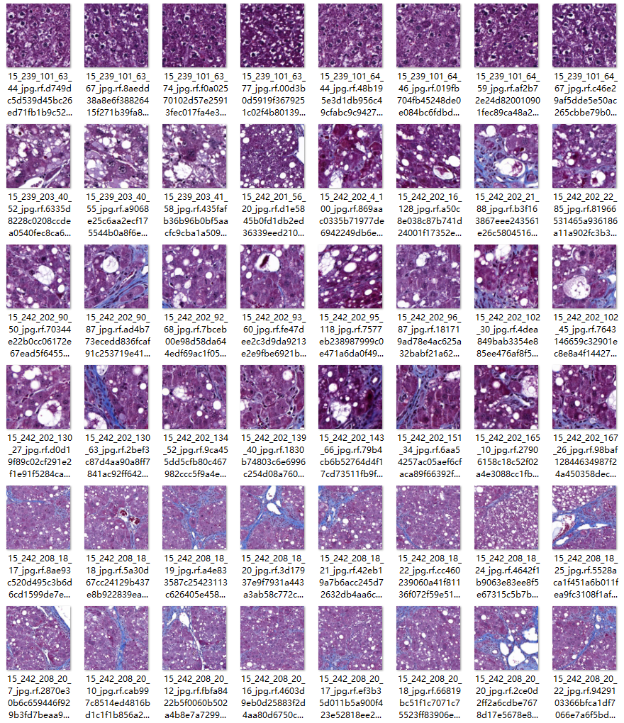 通过涉及多种多样课堂行为相关的图像素材,并利用Labelimg标注工具对获取的所有图像进行标准化标记。这些图像将被划分为三个检测类别:ballooning: 细胞膨胀;fibrosis: 纤维化;inflammation: 炎症;steatosis: 脂肪肝。