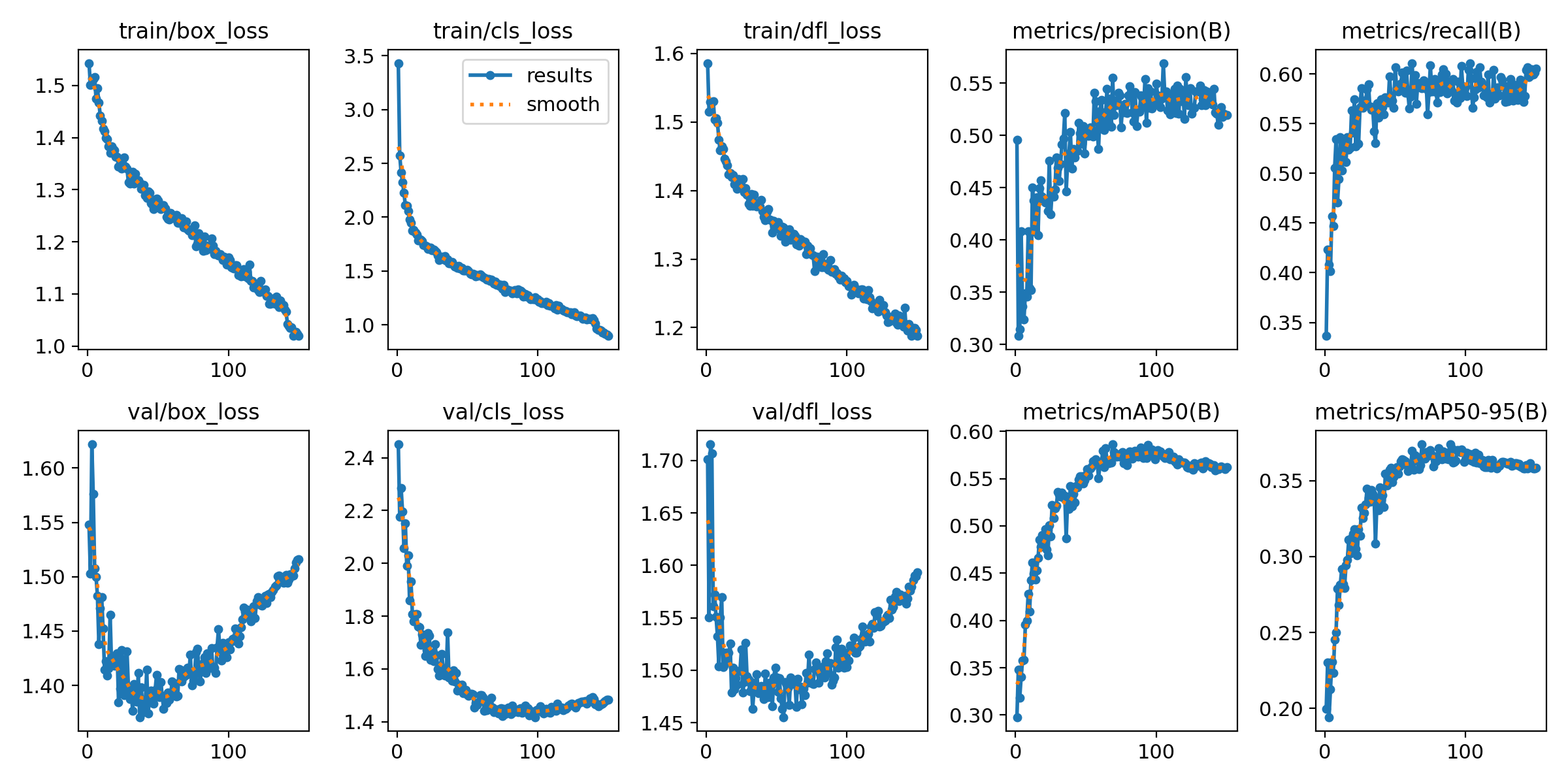 该图表详细描绘了YOLOv8模型在训练与验证过程中各关键指标的变化情况及其变动趋势。