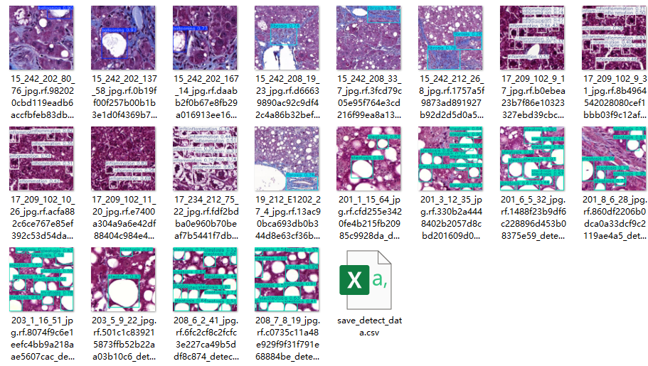 点击"保存"按钮后, 会被当前选择的图片(包括批量图片)或者视频的检测结果所进行保存. 检测的结果会被存储在save_data文件夹中. 保存的结果文件如下: