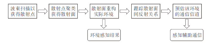 除了基于终端的高分辨感知成像应用外,以下将展示基于基站的环境感知应用及辅助通信结果。由于基站的阵列规模较大,可采用实阵列环境重构算法,利用图6所示步骤获得环境重构结果及感知辅助通信。