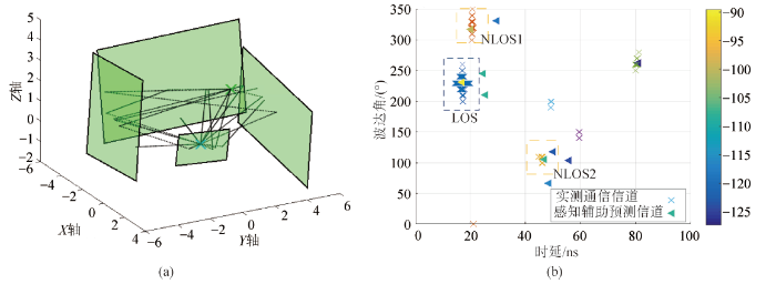 图10基于散射面环境重构模型**(a)和感知辅助通信结果(b)**