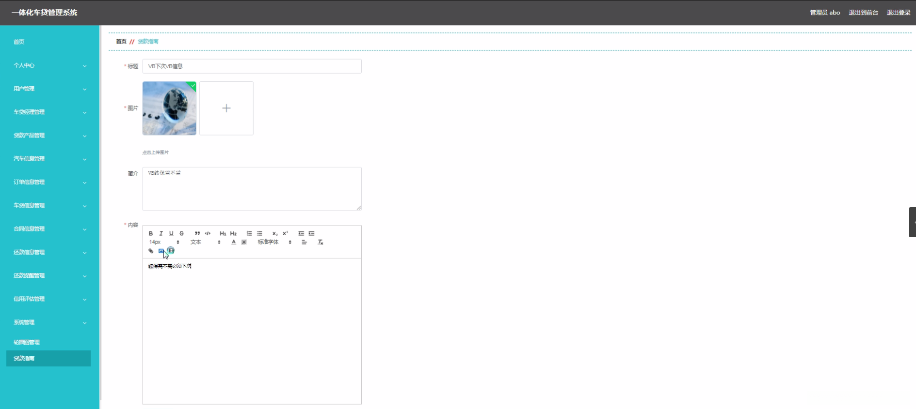 开发一体化车贷管理系统对推动车贷行业的发展意义重大。该系统实现了信息的集中管理和共享功能,并有效解决了传统车贷业务中存在严重的信息不对称问题。建立该系统后各环节的数据实现了实时同步交换,并提升了数据处理的准确性与可靠性水平,并降低了因管理疏忽导致的信息泄露风险