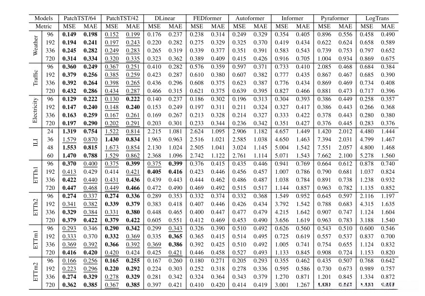 通过使用patch,输入token的数量可以从L减少到大约L/S。这意味着注意图的内存使用量和计算复杂度以s的倍数二次下降。因此,在训练时间和GPU内存受限的情况下,patch设计可以让模型看到更长的历史序列,这可以显著提高预测性能