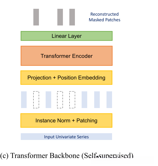 这就很直观了,直接mask掉一些patch然后进行重建即可。对于每一个token(patch),它通过Transformer Encoder后输出维度是 D ,由于该patch本身的长度是 P ,因此要重建它的话,再加上一个 D×P 的Linear层即可。作者还说明了分patch对mask重建来进行自监督学习的好处:mask一个时间点的话,直接根据相邻点插值就可以重建,这就完全没必要学习了,而mask一个patch来重建的话则更有意义更有难度 。
