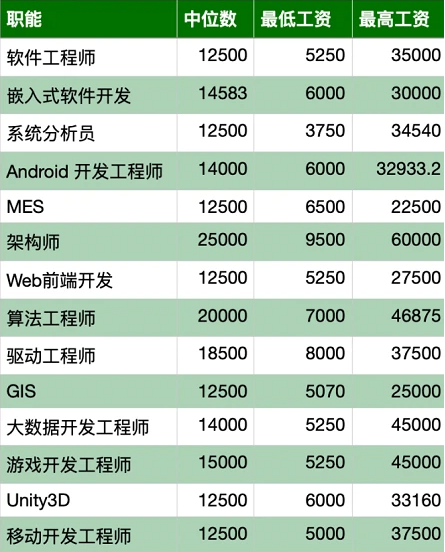 11月不同岗位国内程序员收入