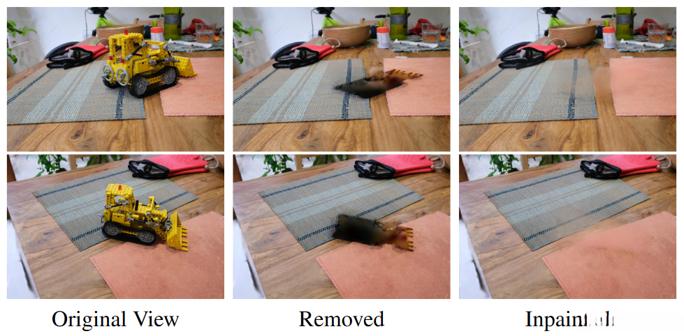Typically, removing the target object based on a Gaussian semantic mask generates artifacts at the interface between the target object and the scene. To address this, we generate a repaired image using a 2D inpainting method andemploy Mean Squared Error (MSE) loss for supervision. The whole process takes merely two minutes.
