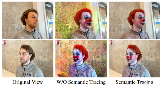 Ablation study on Semantic Tracing. Tracing Prompt: Man As shown in Fig.7, generative guidance techniques such as Instruct-Pix2Pix exhibit a tendency to modify the entire 2D image. With the assistance of semantic tracing, we can confine the editing region to the desired area.