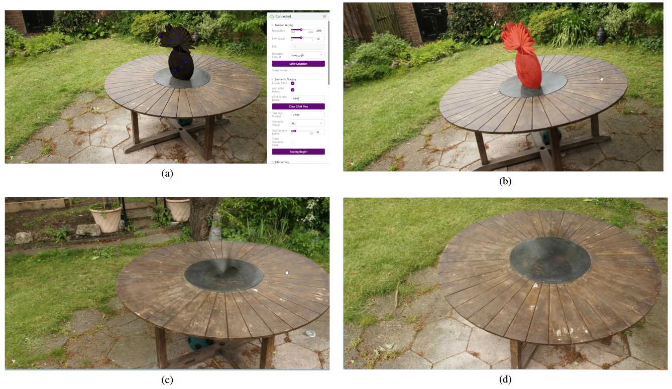 Additionally, we developed a specialized 3D inpainting algorithm for GS, streamlining object removal and integration, and greatly reducing editing time.