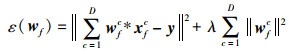 其中变量_D_(大写字母)被定义为通道的数量,在当前帧中的第_c_(小写字母)个通道中分别记录了样本信息以及滤波器信息;通过循环卷积操作实现了特征之间的关联;最终目标输出量_y_(大写字母)与中间结果量_x_f_c_(双下标变量)以及滤波器参数量_w_f_c_(双下标变量)在维度上保持一致性,并且参数λ(希腊字母lambda)起到了正则化的作用