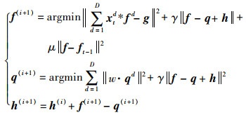 类似于BACF算法,在处理过程中首先将式(29)转化为增广拉格朗日形式,并利用ADMM方法将其分解为若干子问题并依次求解。其对应的增广拉格朗日形式为