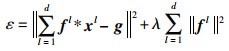 为拉格朗日乘子, N 为** x** k 的长度, μ 为惩罚因子,** F** 为标准正交矩阵。