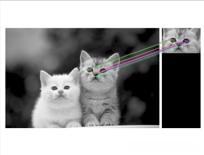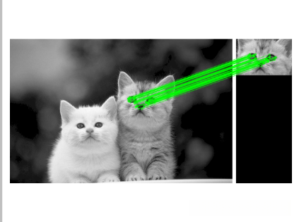 在获得结果后可利用cv2.drawMatches()或cv2.drawMatchesKnn()函数呈现匹配结果图像。