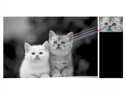 outImg=cv2.drawMatchesKnn(img1,keypoints1,img2,keypoints2,matches1to2,outImg,matchcolor,singlePointsColor,matchesMask,flags)