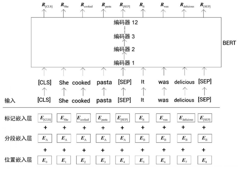 a. 将三种嵌入结果相加得到各标记对应的最终特征向量R