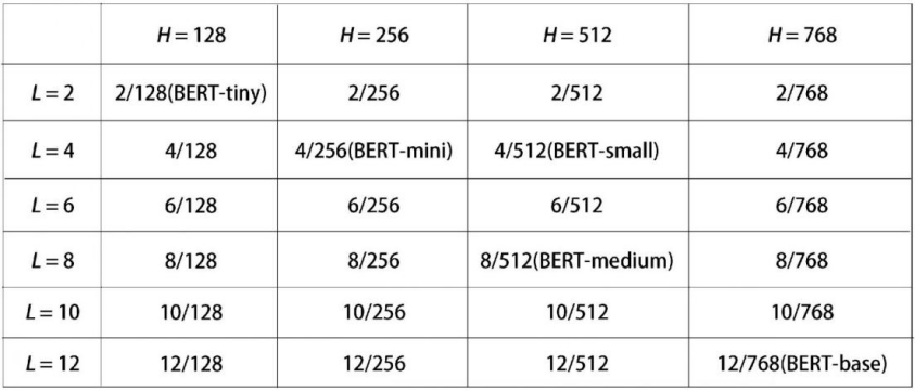 - Google官方根据不同编码器层数以及隐藏神经元数量设置了多种模型配置方案。